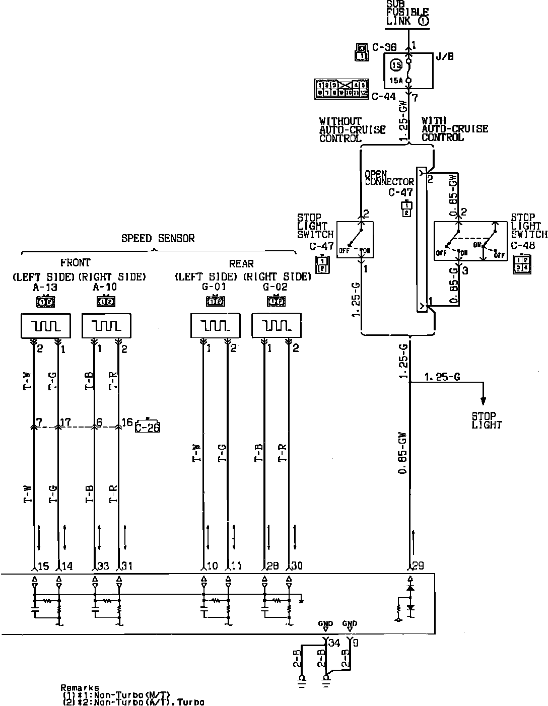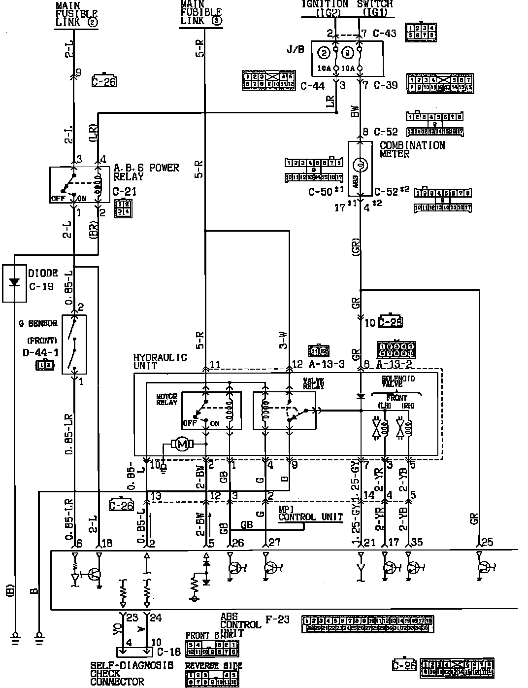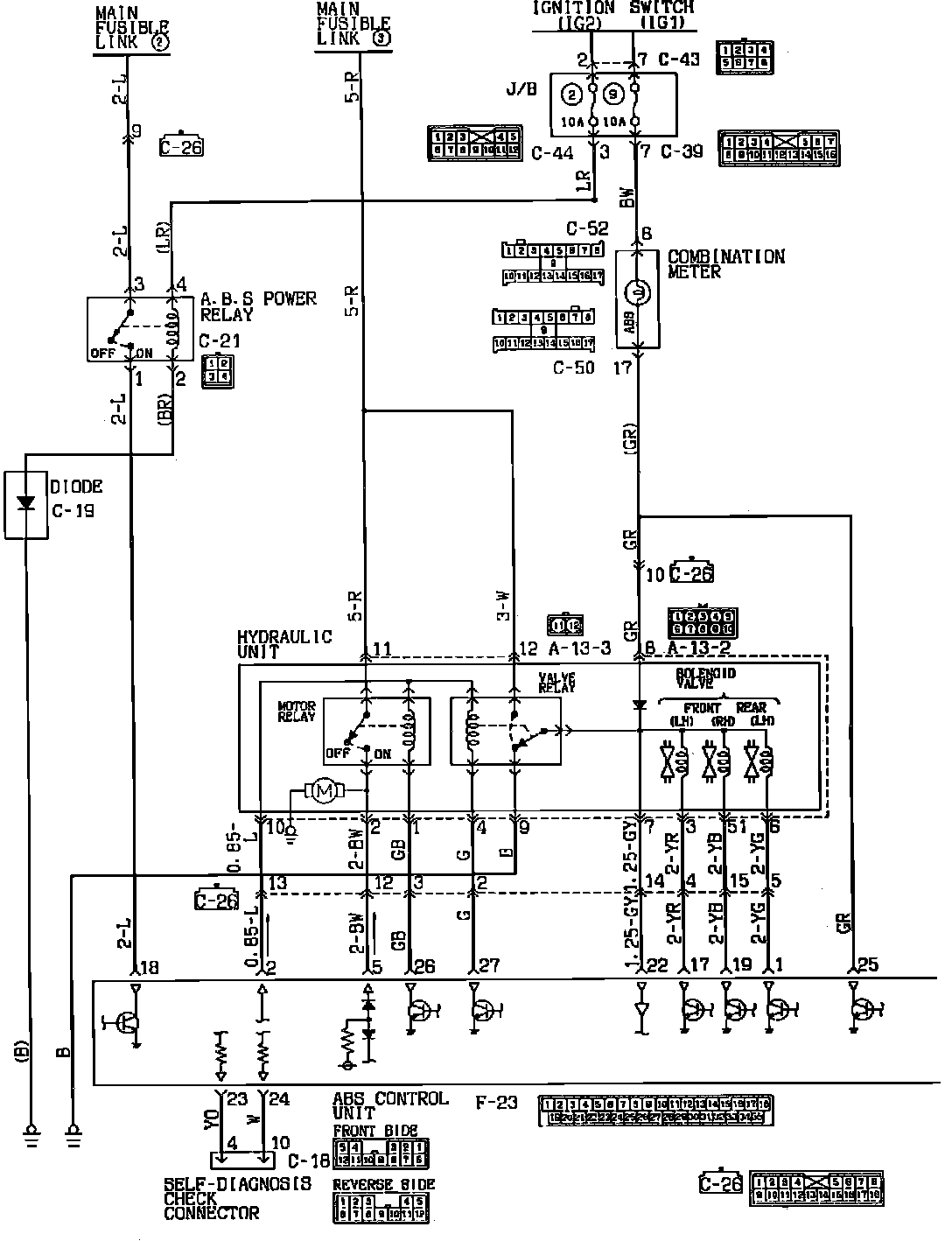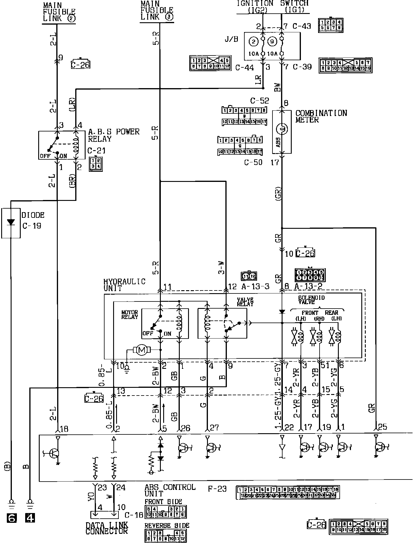 Fig. 17 Anti-lock Brake System Wiring Diagram. (Part 1 Of 2) 1992 Galant AWD: