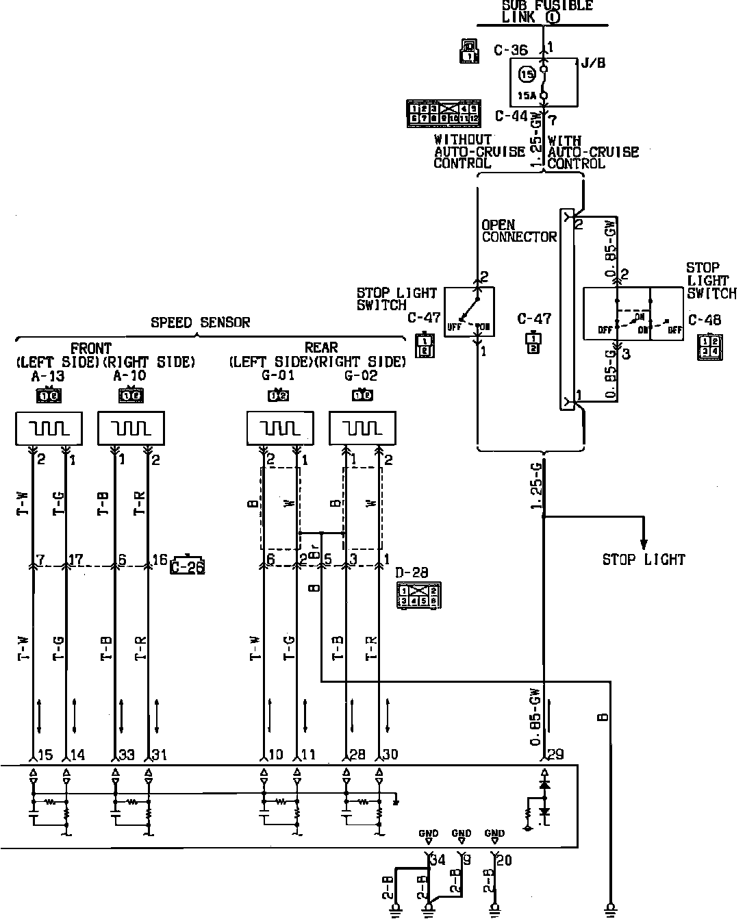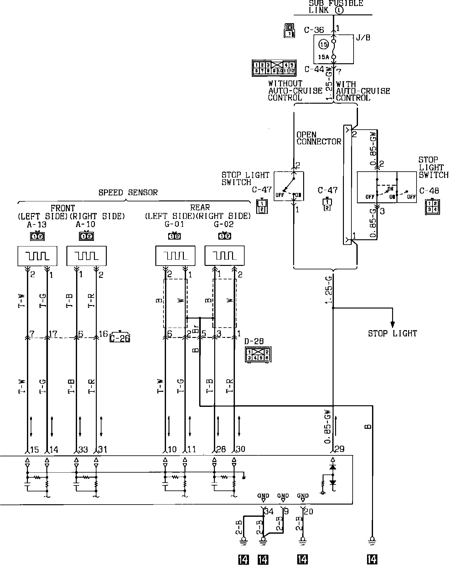 Fig. 21 Anti-lock Brake System Wiring Diagram. (Part 1 Of 2) 1992 Galant FWD: