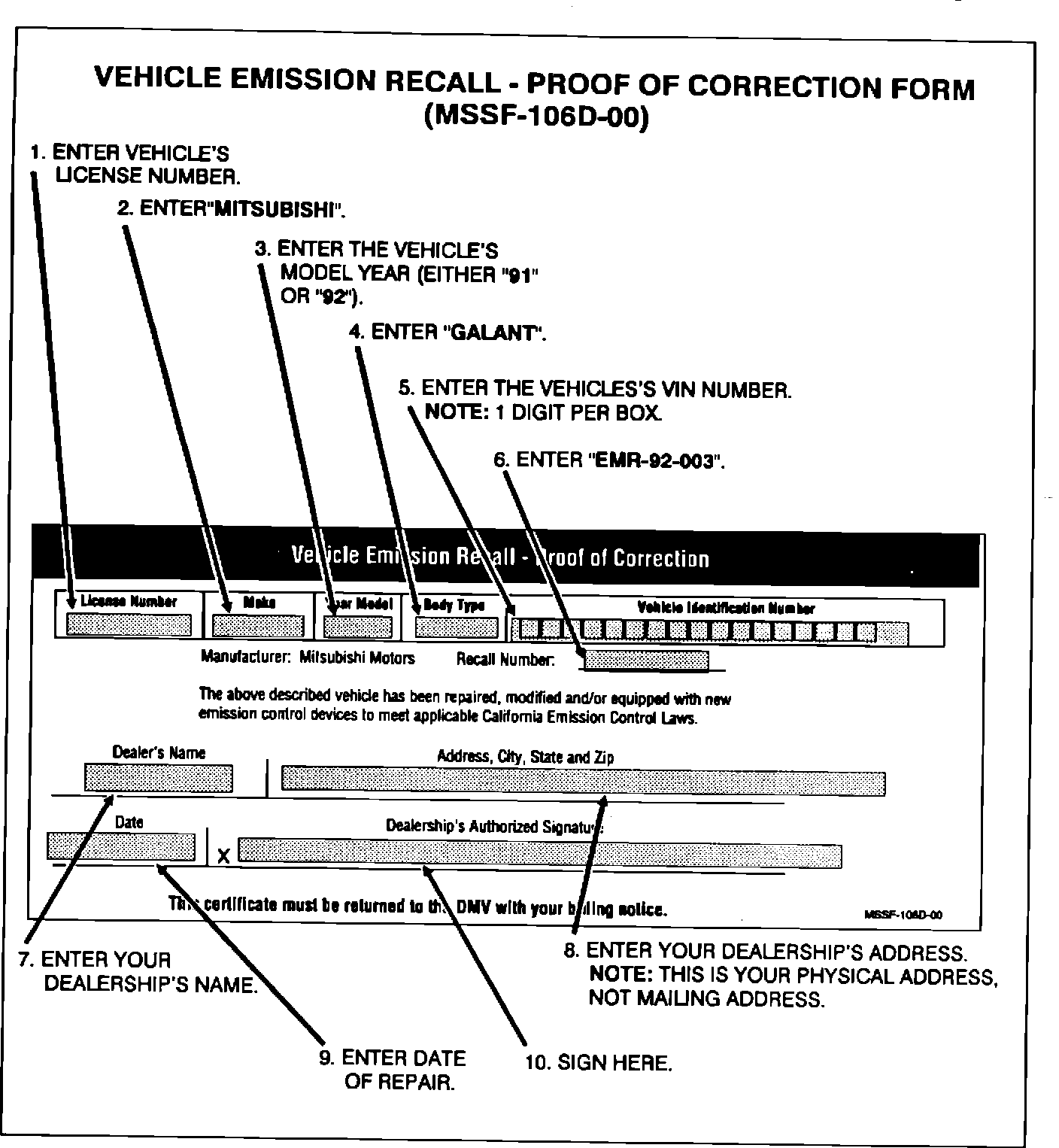 COMPLETING THE VEHICLE EMISSION RECALL - PROOF OF CORRECTION FORM