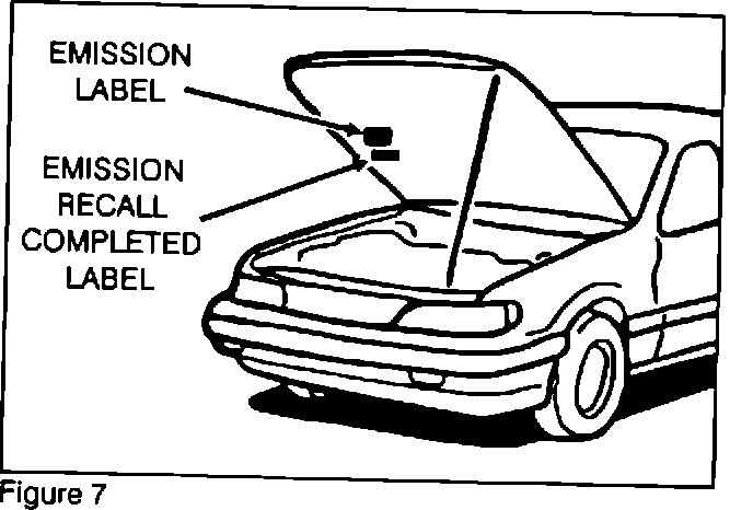 4. Carefully remove all dirt and oil from the vacant area BELOW the existing emission label. Affix the Emission Recall Completed Label BELOW the existing emission label (Figure 7).
