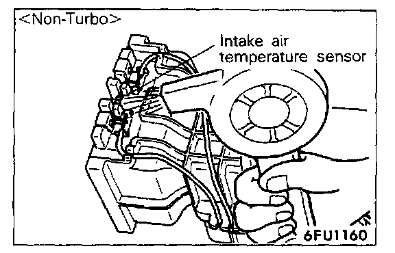 The 5V power supply within the engine control module is supplied, by way of the resistance within the unit, to the intake air temperature sensor; it passes through the intake air temperature sensor, which is a type of resistor, and is grounded at the engine control module. Note that the resistance of the intake air temperature sensor decreases when the temperature of the intake air increases.