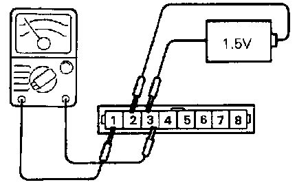 (1) Connect the negative (-) terminal of the 1.5V power supply to terminal 3 of the ignition power transistor; then check whether there is continuity between terminal 3 and terminal 8 when terminal 7 and the positive (+) terminal are connected and disconnected.