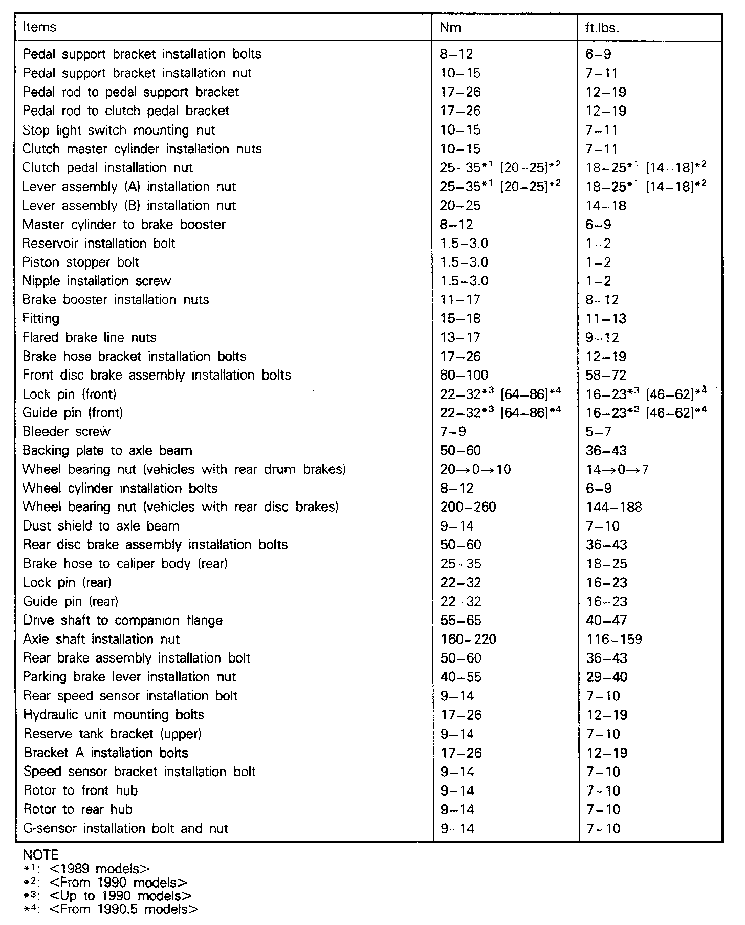 Torque Specifications