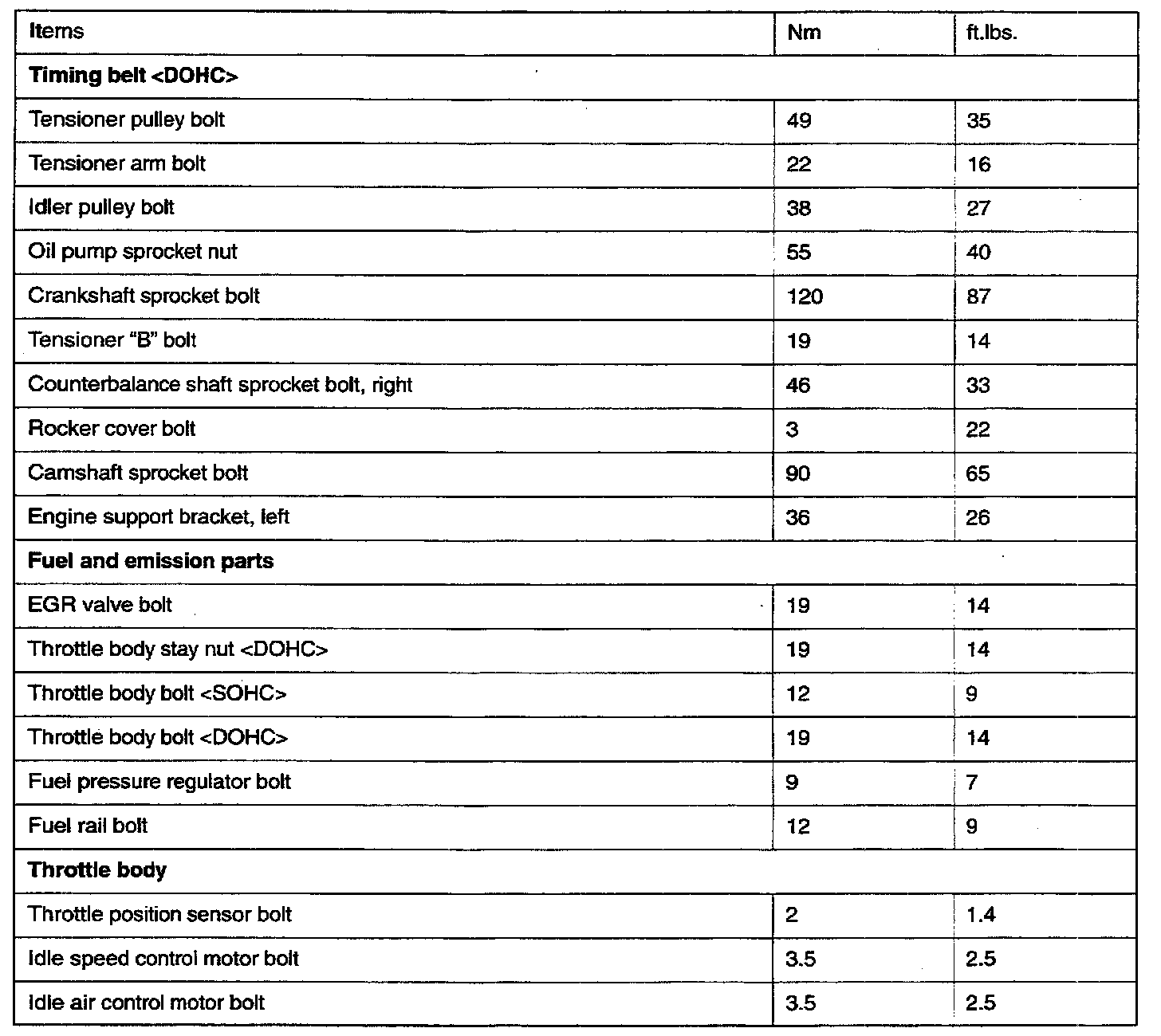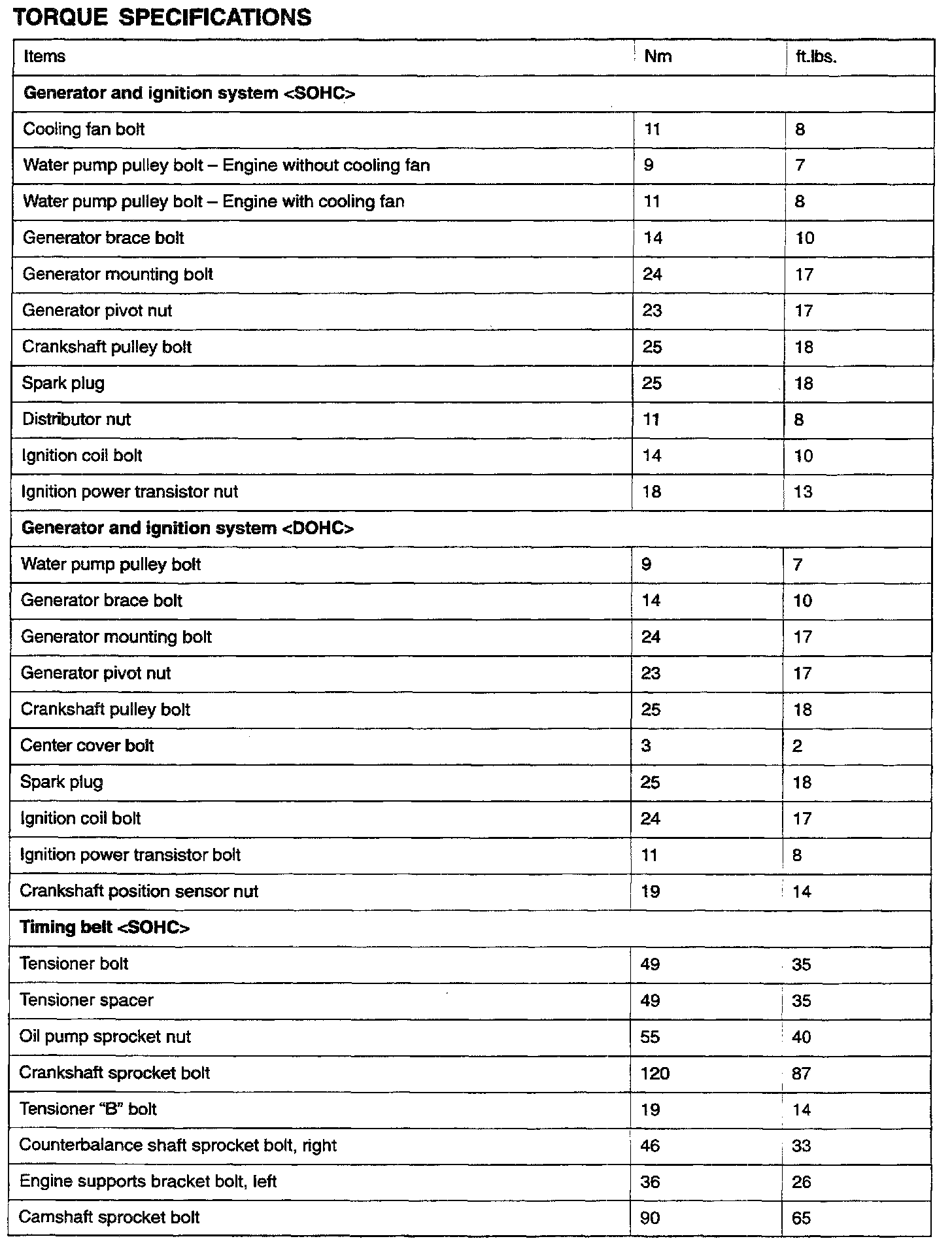 Torque Specifications