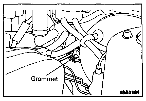 2. Install the grommet so that, as shown in the illustration, the cable attachment part is positioned upward