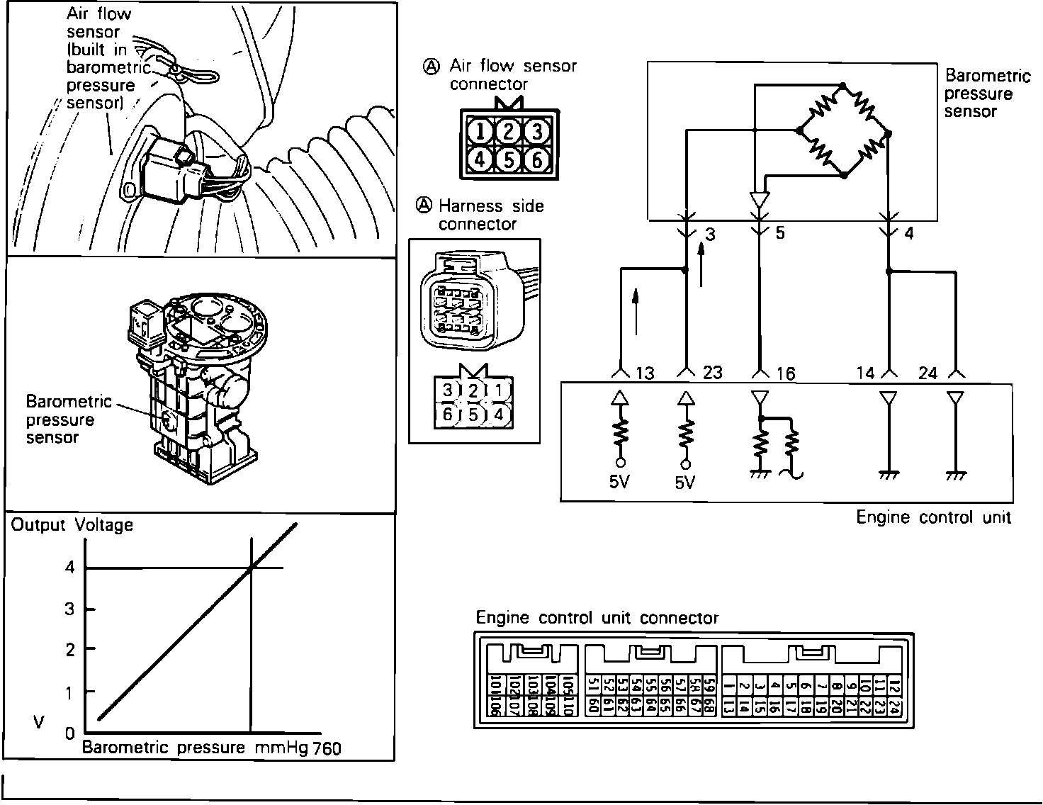 The ECU uses the Voltage signal to adjust the air-fuel ratio and ignition timing for the altitude at which the vehicle is running, thus improving driveability at high altitude.