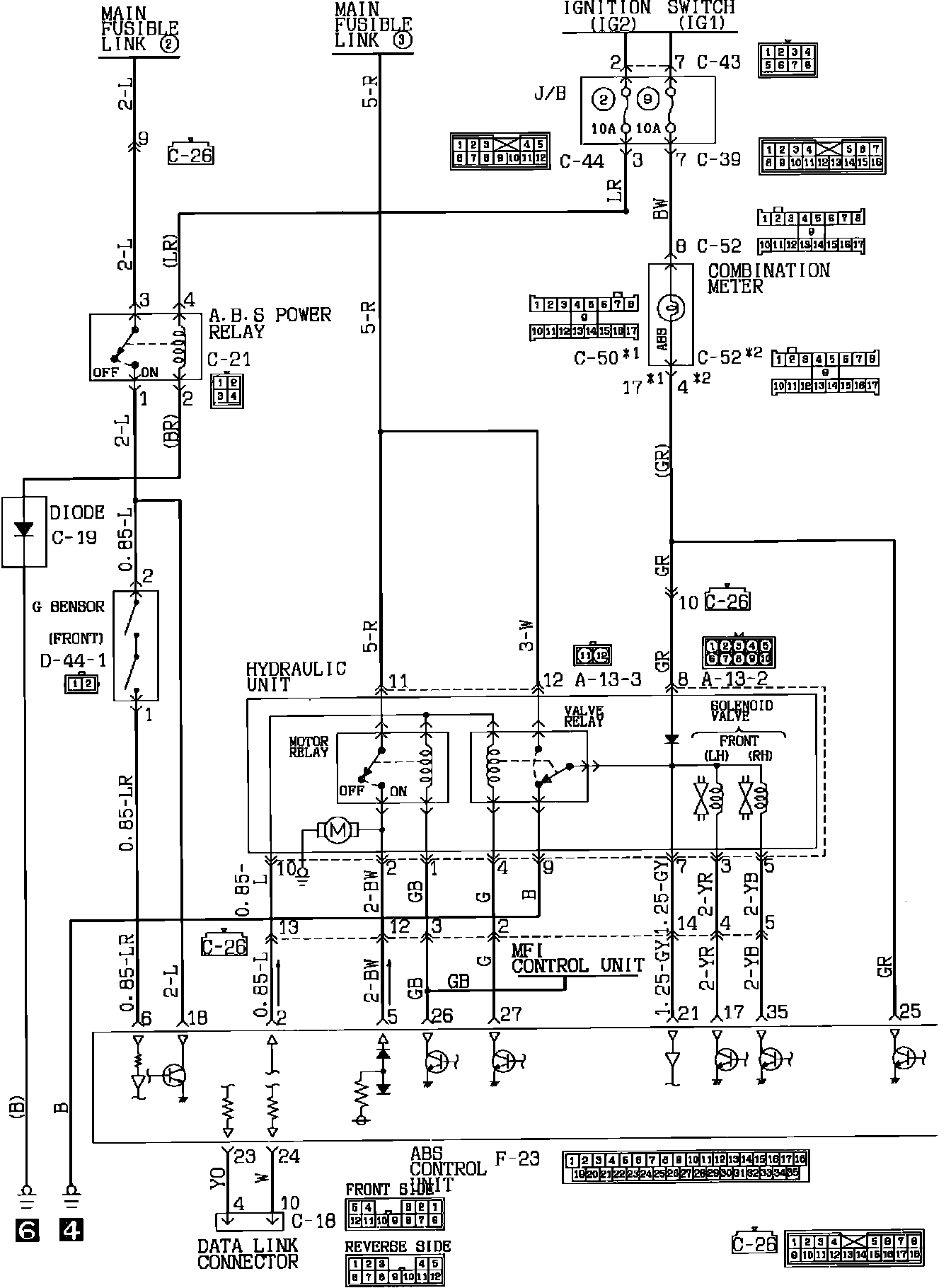 Fig. 17 Anti-lock Brake System Wiring Diagram. (Part 1 Of 2) 1992 Galant AWD:
