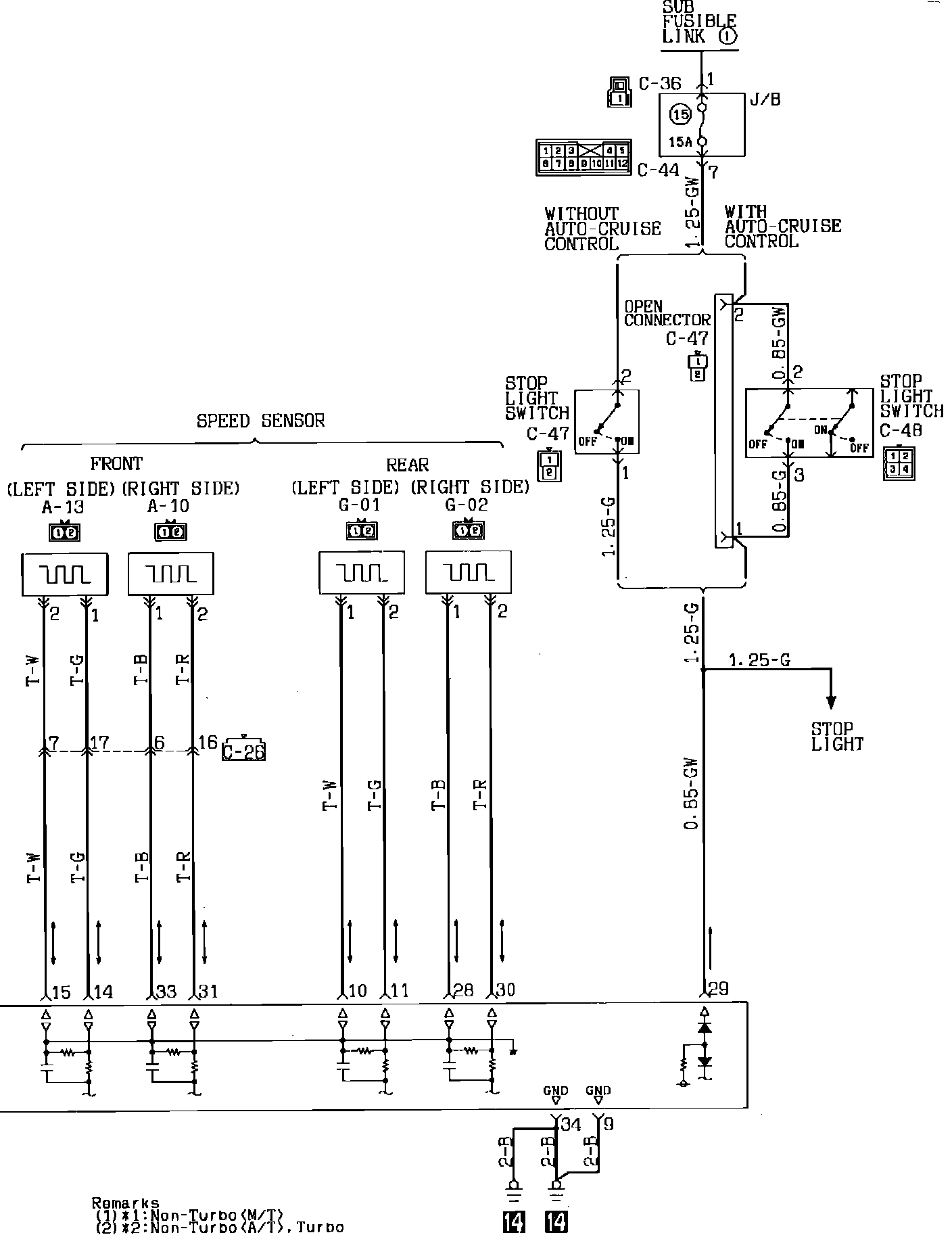 Fig. 21 Anti-lock Brake System Wiring Diagram. (Part 1 Of 2) 1992 Galant FWD: