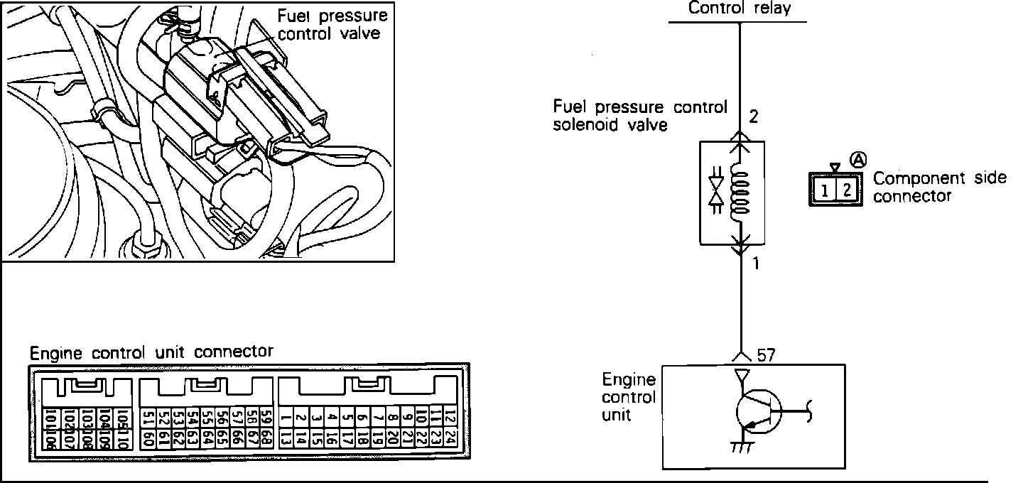 1. Disconnect the fuel pressure regulator solenoid connector and turn the key to the ON position.