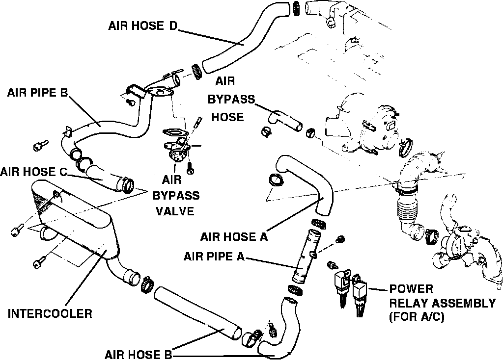 CAUTION: Be careful not to allow any dirt or other foreign objects to enter the hoses, pipes or intercooler.
