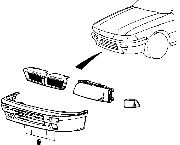 1. Remove the grille, front combination light, headlight and front bumper face coupling clip.