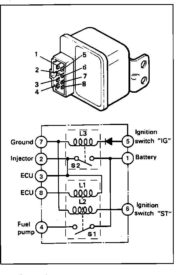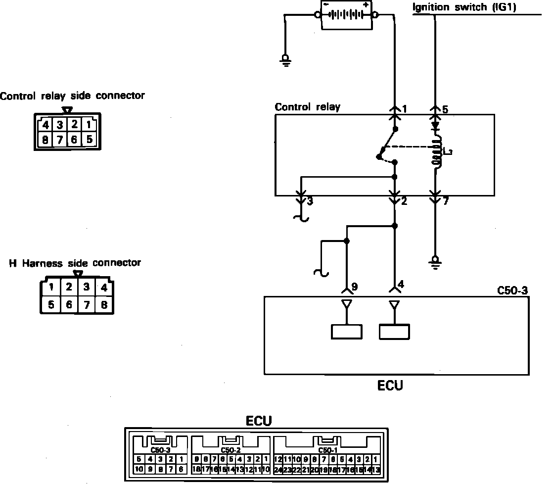 NOTE: Failure of the control relay could interrupt power supply to the fuel pump, injectors and ECU, resulting in start failure.