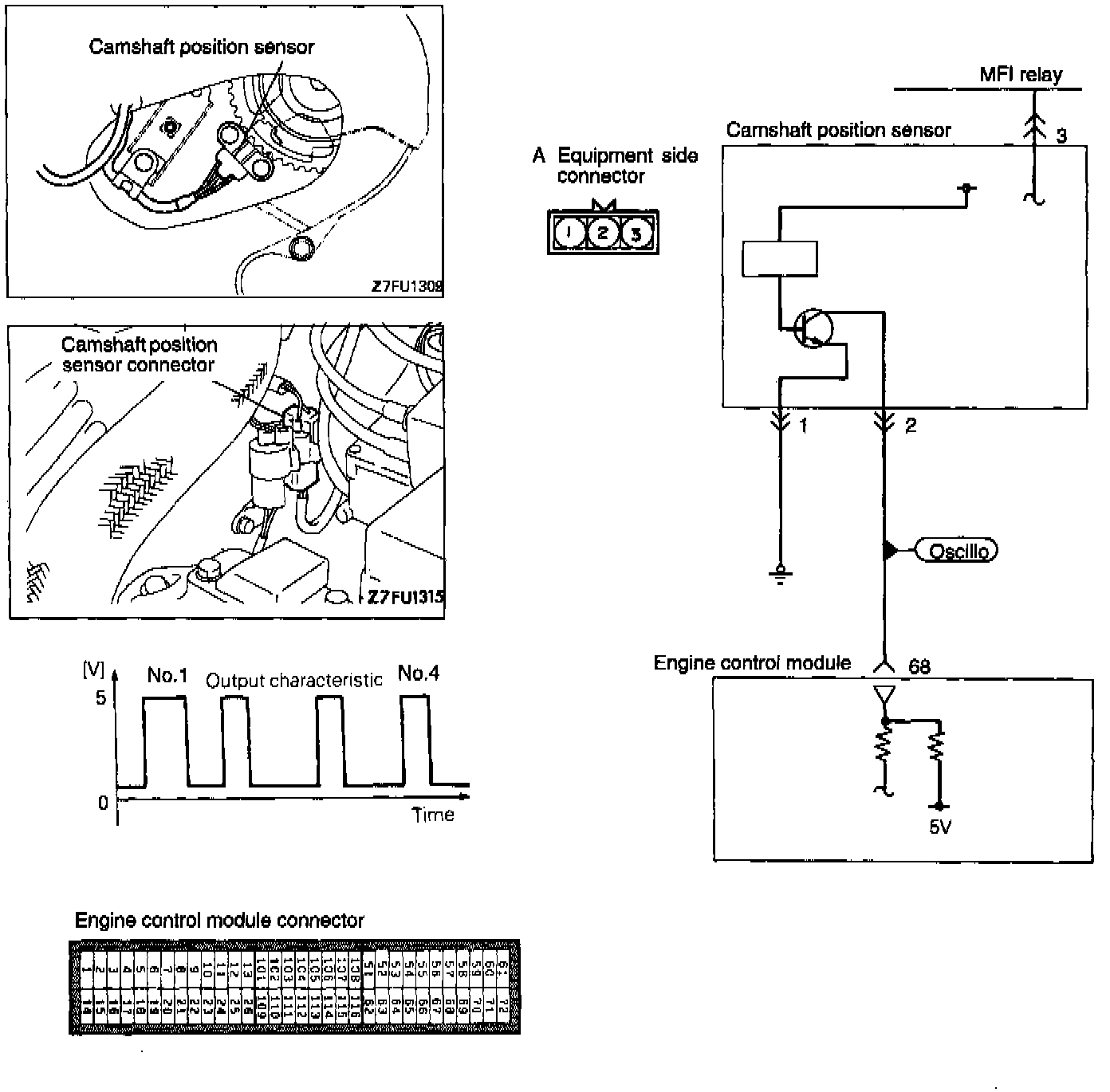 Hint 1: If the camshaft position sensor does not function correctly, correct sequential injection is not made so that the engine may stall, run irregularly at idle or fail to accelerate normally.