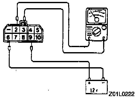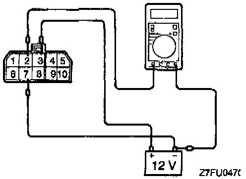 (2) Using jumper wires, connect terminal (10) of MFI relay to battery (+) terminal and terminal (8) of MFI relay to battery (-) terminal.