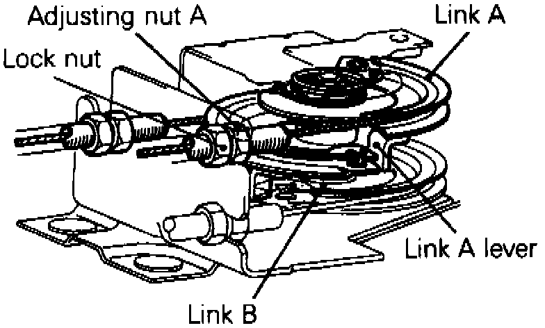 3. Determine point at which intermediate link (A), Fig. 19, contacts link (B), then unscrew adjusting nut (A) approximately one full turn in this position.