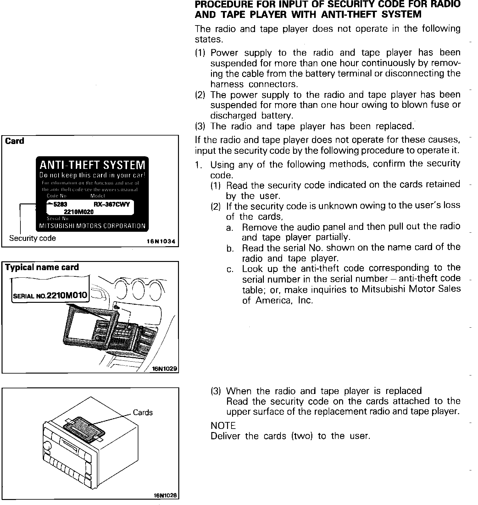 Procedure For Security Code Input:
