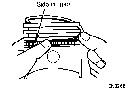 Caution: Do not use piston ring expander when installing side rail.