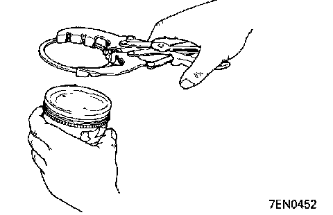 (1) Using piston ring expander, fit No.2 and then No. 1 piston ring into position.