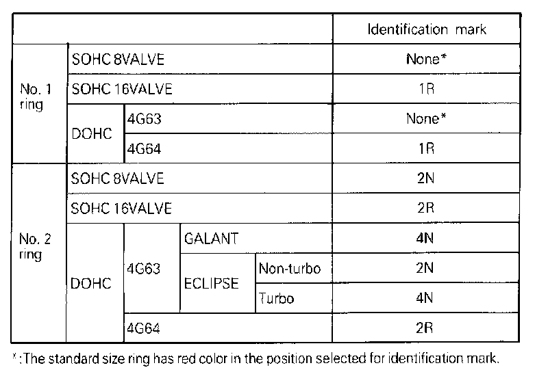 (2) Install piston rings with identification mark facing up, to the piston crown side.