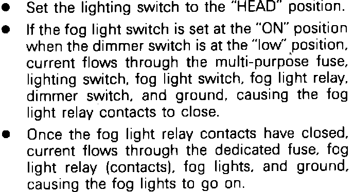 Fog Lamps Circuit Operation:
