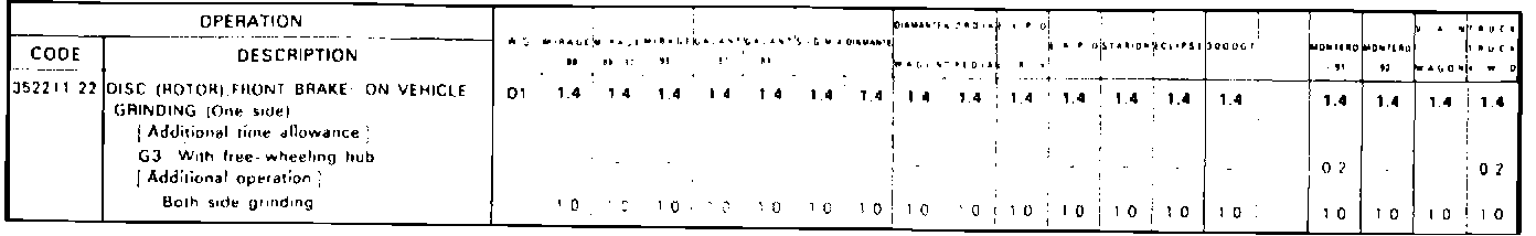 The 8-digit operation number shown in the chart below DOES NOT apply when an offthe-car brake lathe is used or when rear disc brake rotors are machined. The operation number applies ONLY when an on-the-car brake lathe is used to machine FRONT brake rotors.