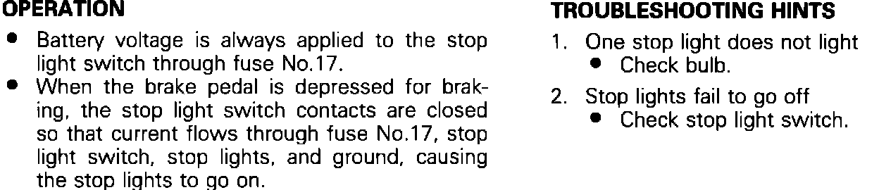 Stop Lamp: Circuit Operation And Troubleshooting: