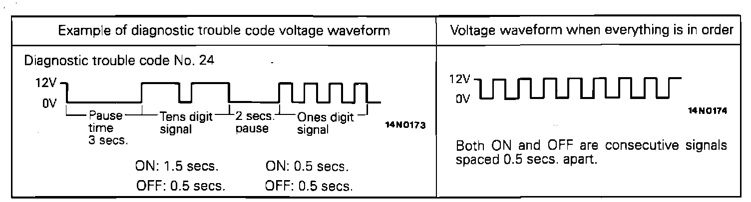 3. Note the pattern of pulses displayed on the voltmeter. If the voltmeter indicates a steady voltage (either 0 volts or 12 volts) the TCM has failed.