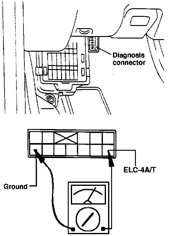 1. Connect an analog voltmeter to the ground and the transmission self diagnosis output pin of the diagnostic connector.