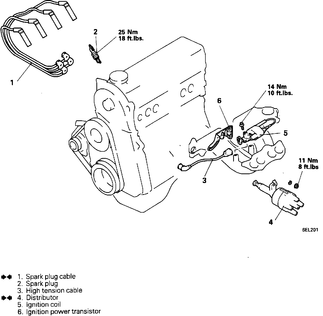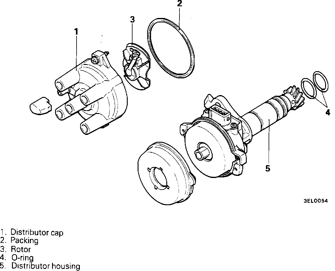 5. Remove distributor mounting nut, then the distributor assembly from engine.