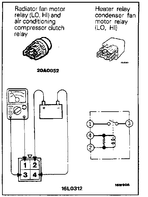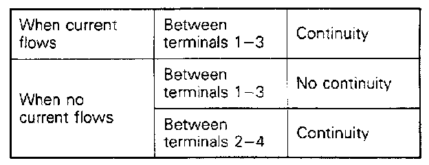 Check for continuity between the terminals when the battery power-supply is applied to terminal (2), and terminal (4) is grounded.