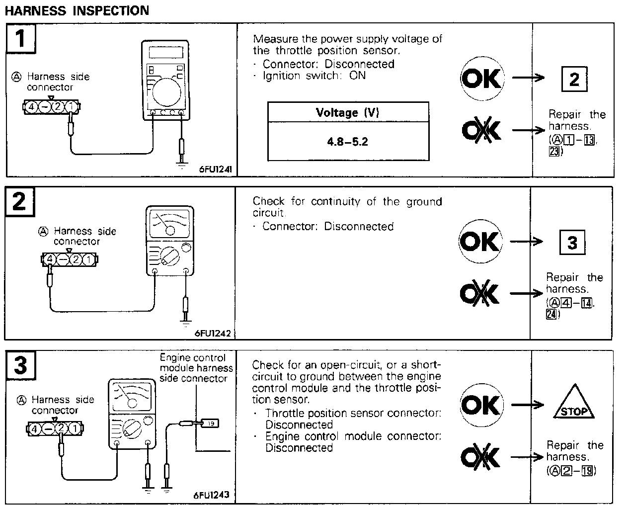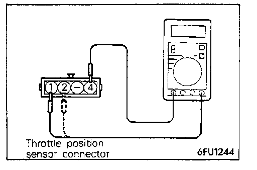 (5) If the resistance is out of specification, or fails to change smoothly, replace the throttle position sensor.