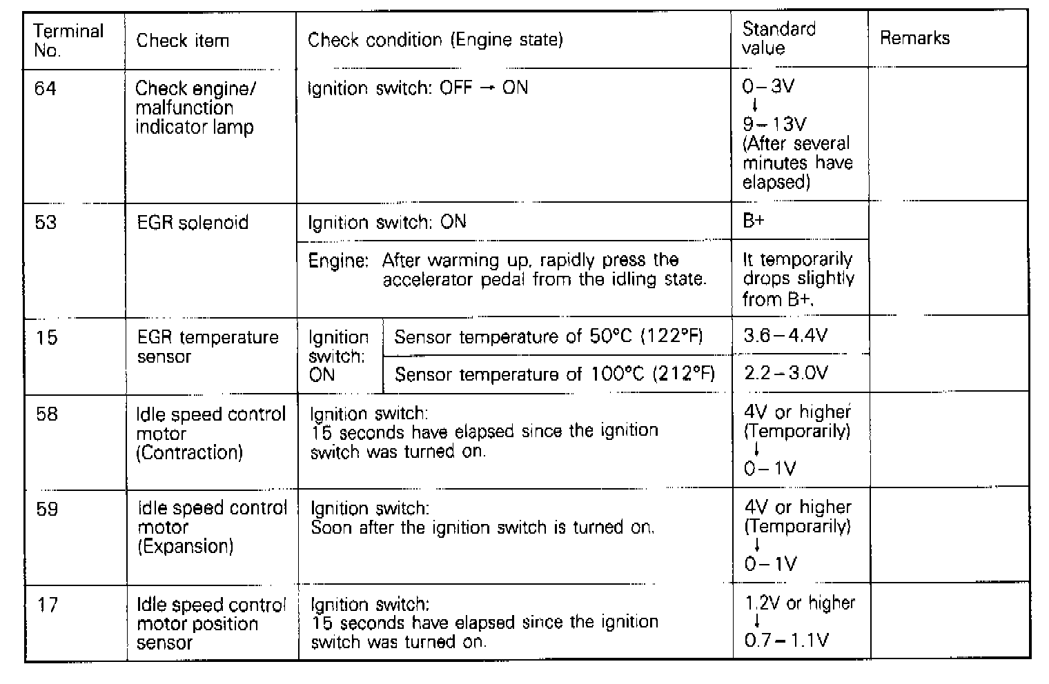 TERMINAL VOLTAGE CHECK CHART