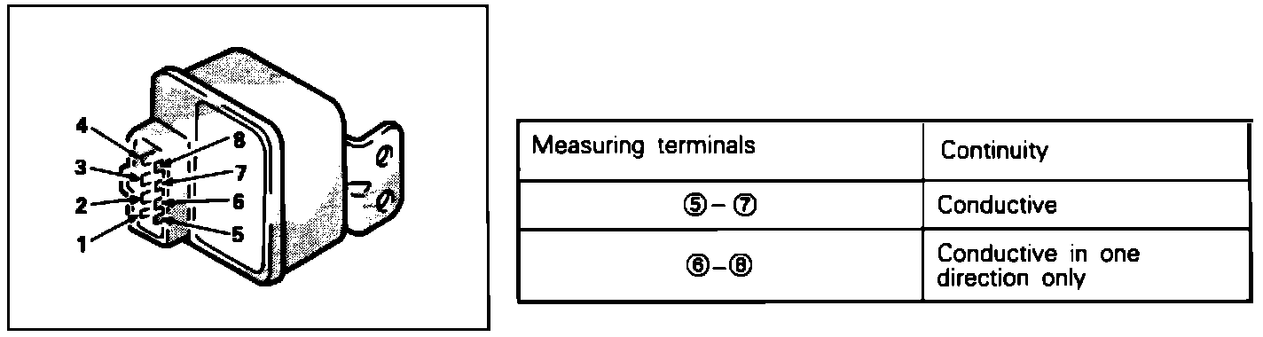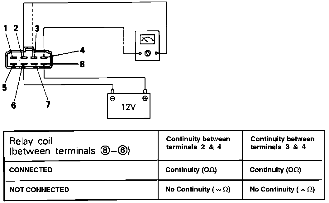 4. Using an Ohm meter, check the resistance terminals 2 and 4, when Voltage is supplied and not supplied between terminals 6 and 8 as shown in FIG. 3.