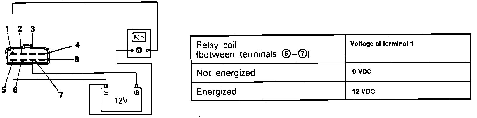2. Using a Volt meter, check the Voltage between relay harness terminal 8 and ground.