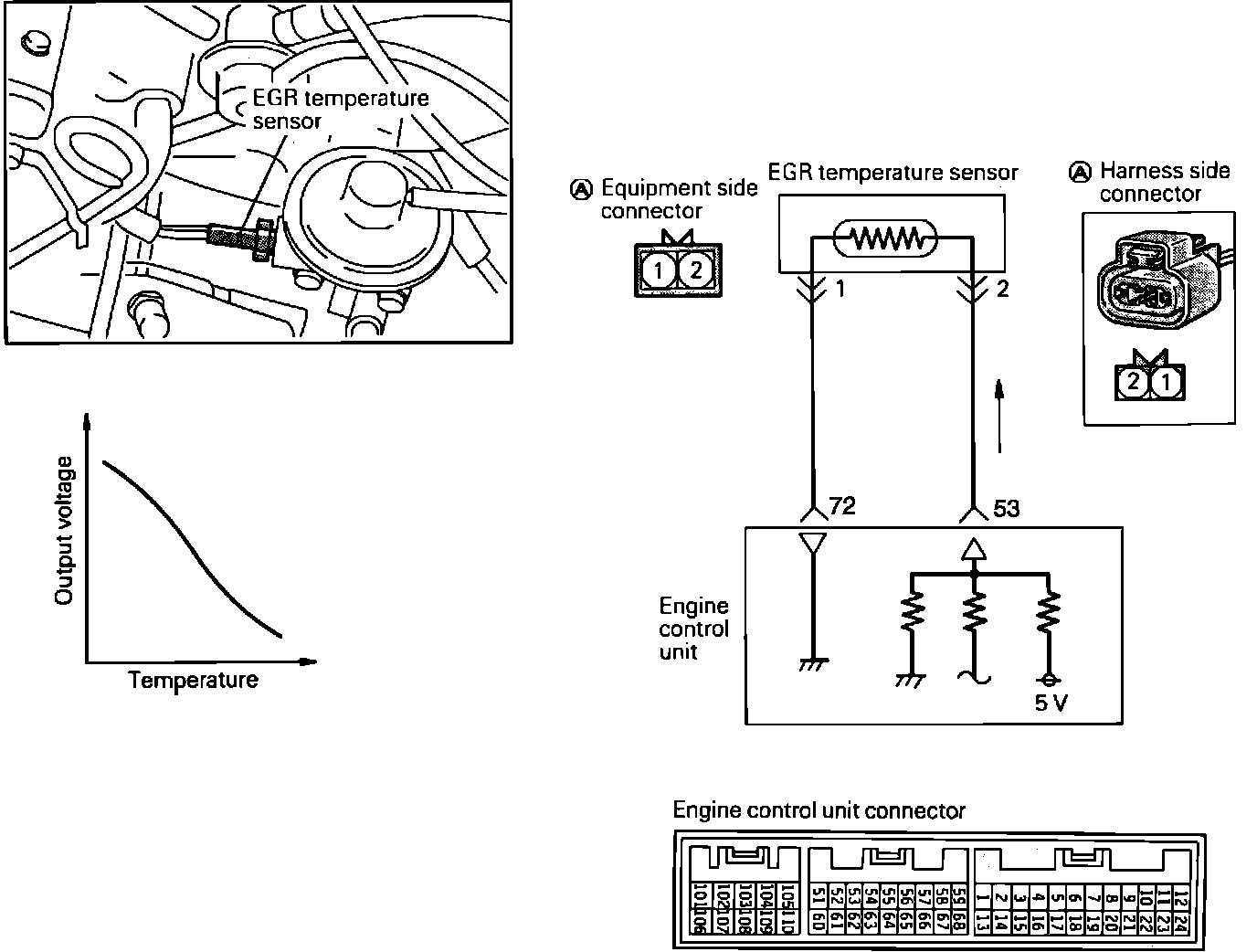 To confirm that the EGR valve is functioning properly, the ECU expects to see an increase in temperature at the sensor whenever the EGR valve is operating. In the event of a malfunction the ECU will set a code and turn the Check Engine Light "on". The resistance value of the sensor increases as temperature decreases.