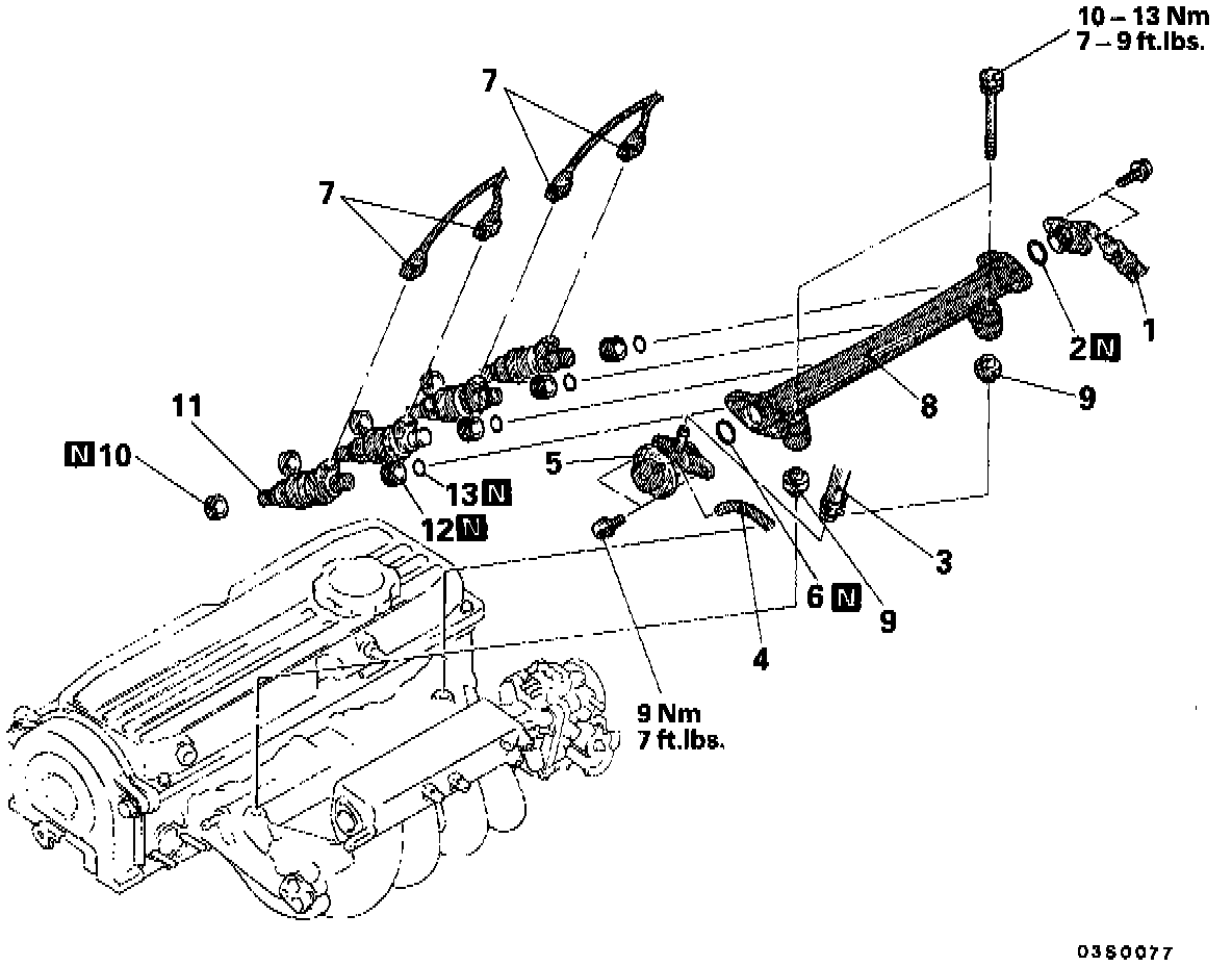 9. After replacement of the fuel rail and injectors, check for leaks with the system pressurized.