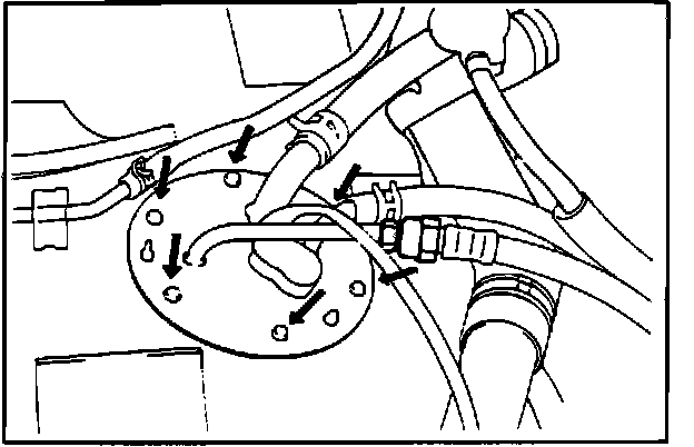 After fuel tank removal, remove the fuel pump installation screws, then remove the pump from the fuel tank.