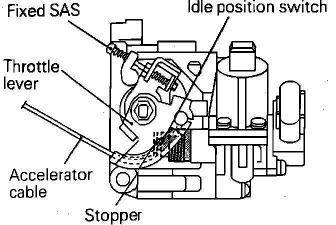 6. Confirm that the throttle lever stopper touches the idle position switch.