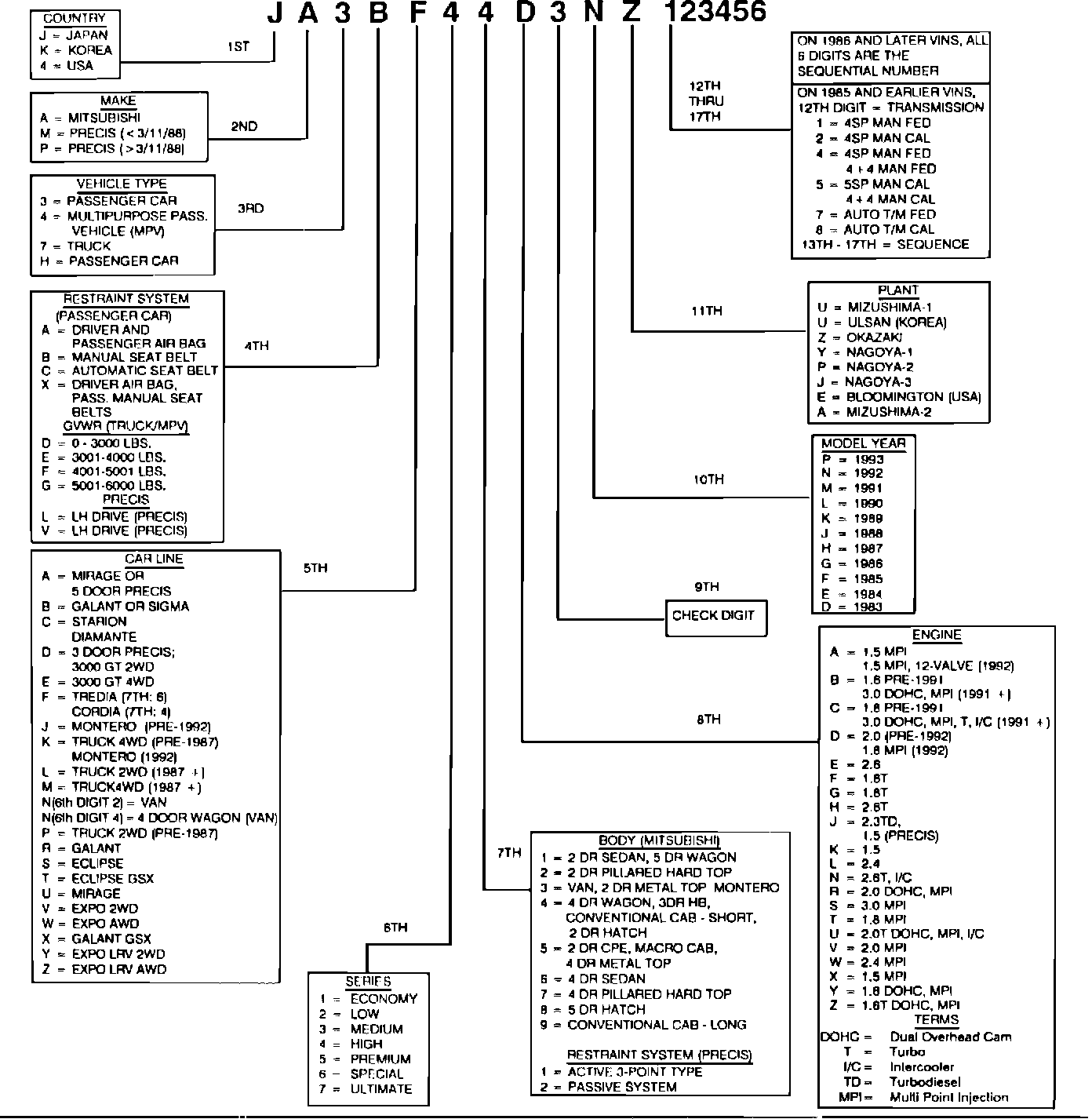 This image will allow decoding of any Mitsubishi VIN. # from 1983 to 1993.