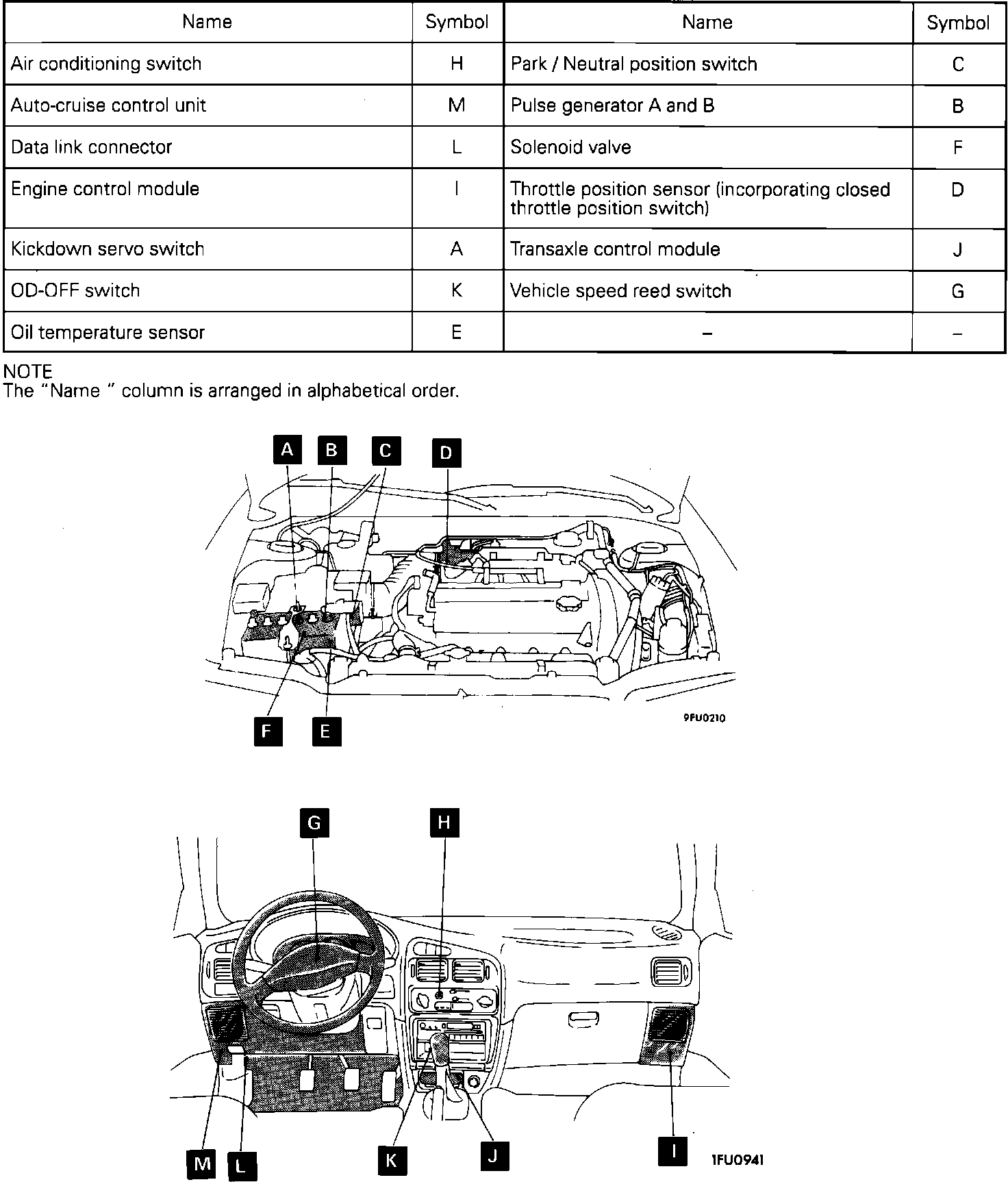 Component/Relay/Switch Locations (Automatic Transaxle, 3-Speed):