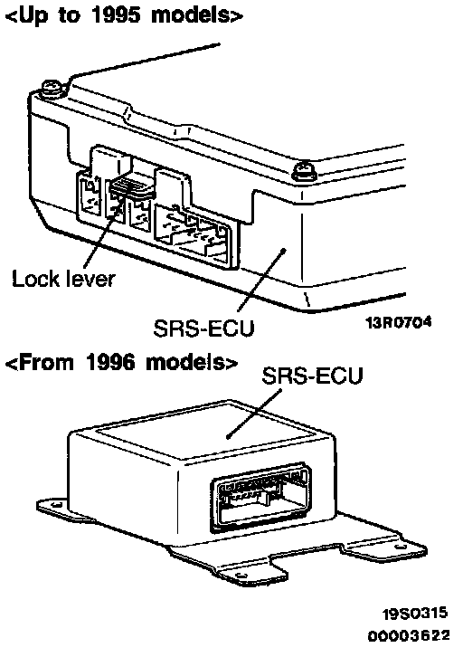 1. Check SRS-ECU case and brackets for dents, cracks or deformities.