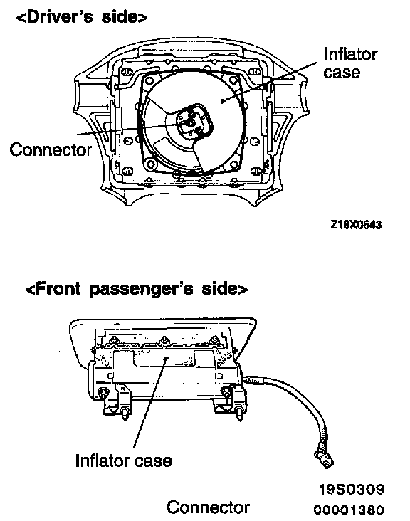 Check the SRS components. If the SRS components are showing any visible damage such as dents, cracks, or deformation, replace them with new ones. Concerning parts removed for inspection, replacement with new parts and cautionary points for working, refer to appropriate COMPONENT SERVICE Caution.