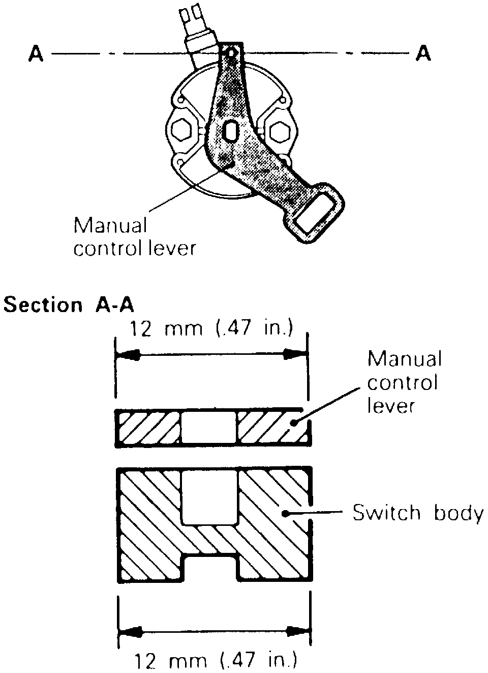 4. Rotate switch body until holes in flange and manual control lever are aligned, Fig. 9, then torque switch mounting bolts to 8 ft. lbs.
