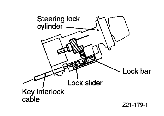 b) Install the key interlock cable on the lock bar and steering lock cylinder as shown above.