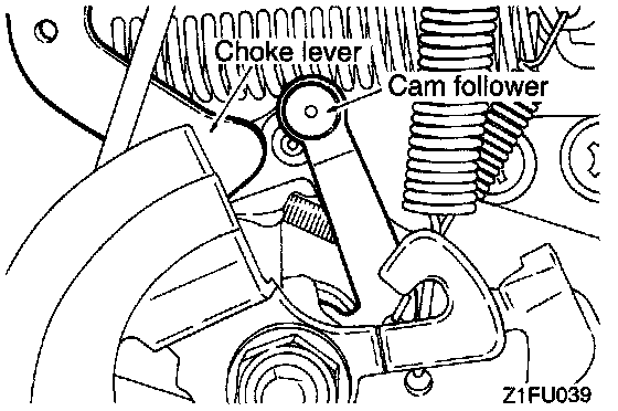 - Check to ensure that the choke lever is away from cam follower.