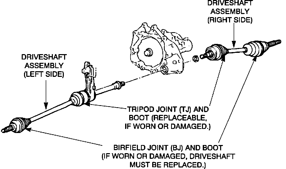 If the Tripod Joint and/or inner driveshaft boot requires servicing, the TJ components may be replaced separately. But, if any of the affected vehicles requires Birfield Joint repair and/or outer driveshaft boot replacement, the entire side of the driveshaft must be replaced as a unit.