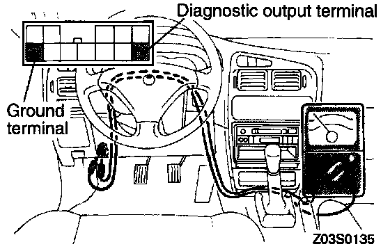1. Connect an analog voltmeter to the diagnostic output terminal (No. 6 terminal) and the ground terminal (No. 12 terminal) of the data link connector (white).