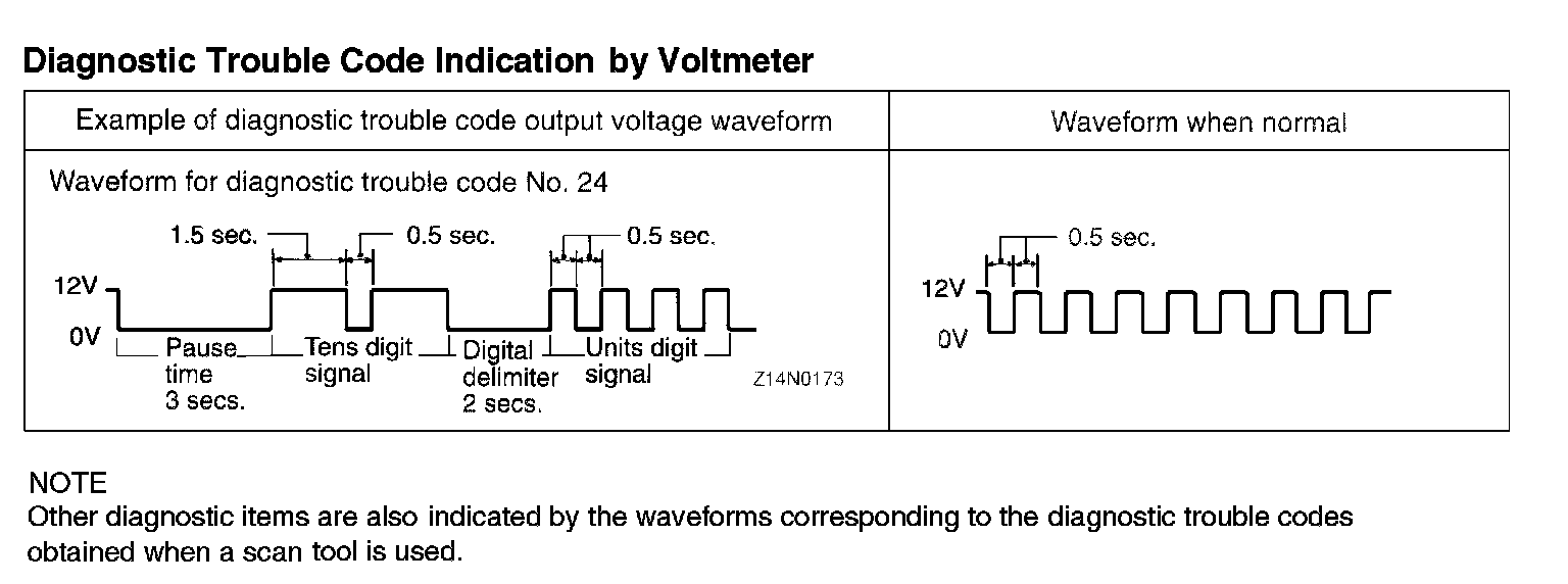 NOTE: Other diagnostic items are also indicated by the waveforms corresponding to the diagnostic trouble codes obtained when a scan tool is used.