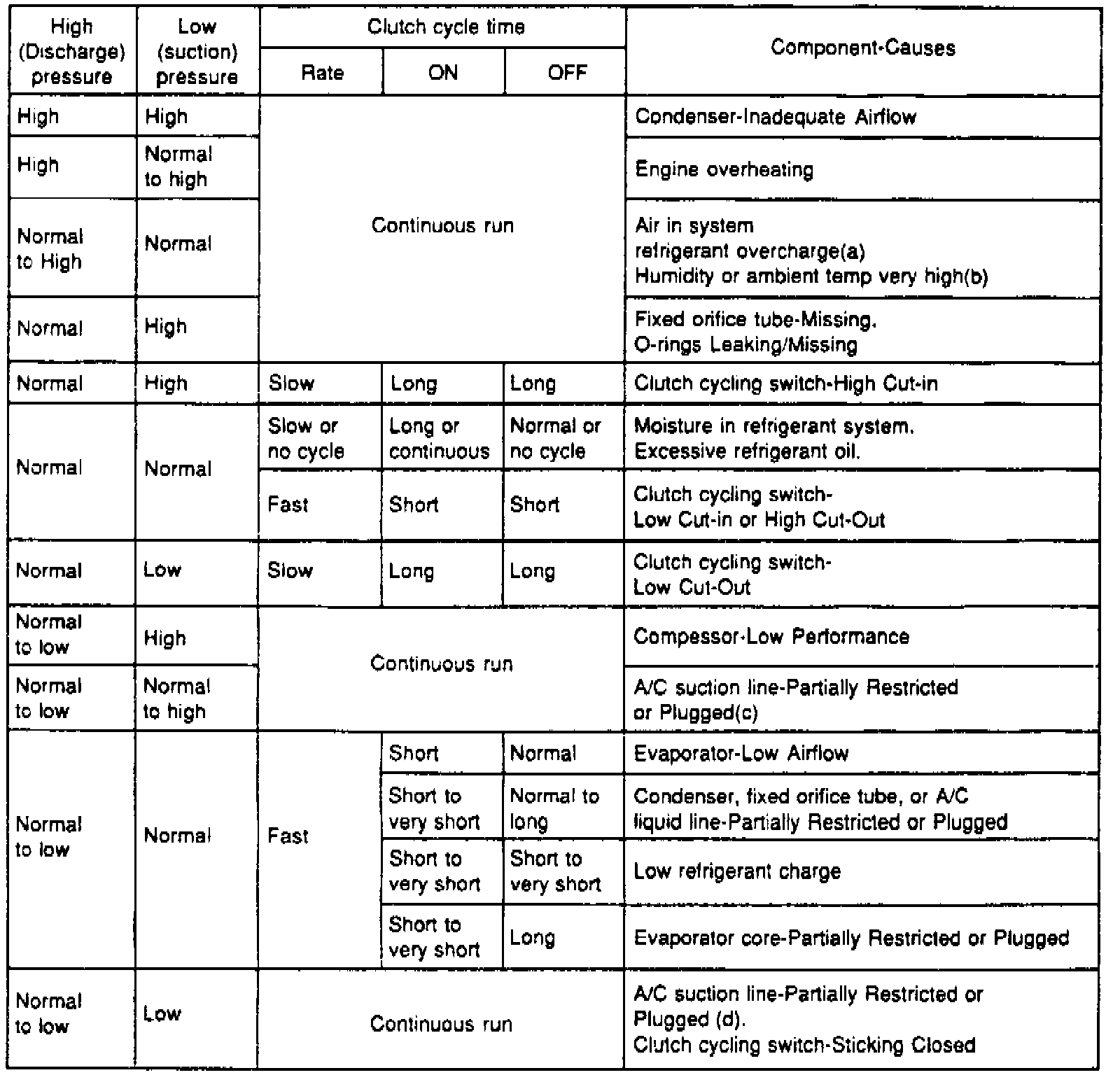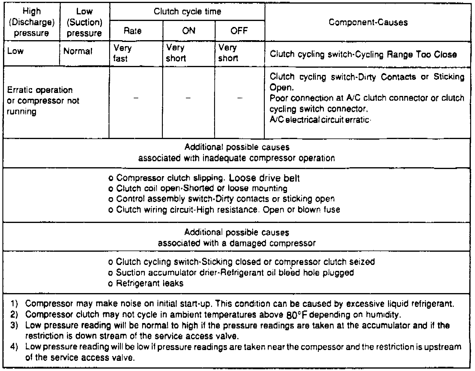 14. After servicing and correcting a refrigerant system problem, repeat this procedure to ensure proper operation of the A/C system. In ambient temperatures above 100°F, compressor clutch will not normally cycle off and, in many instances, clutch will not cycle off when temperatures are above 90°F.