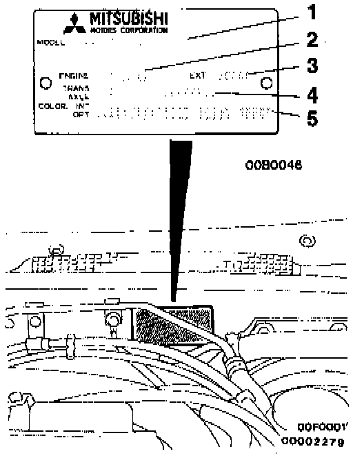The place shows model code, engine model, transaxle model, and body color code.